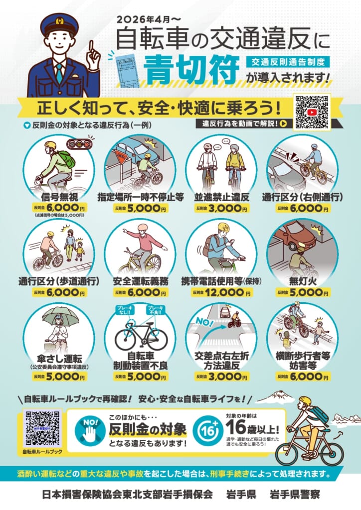 自転車の交通違反に青切符が導入されます 2026年4月~